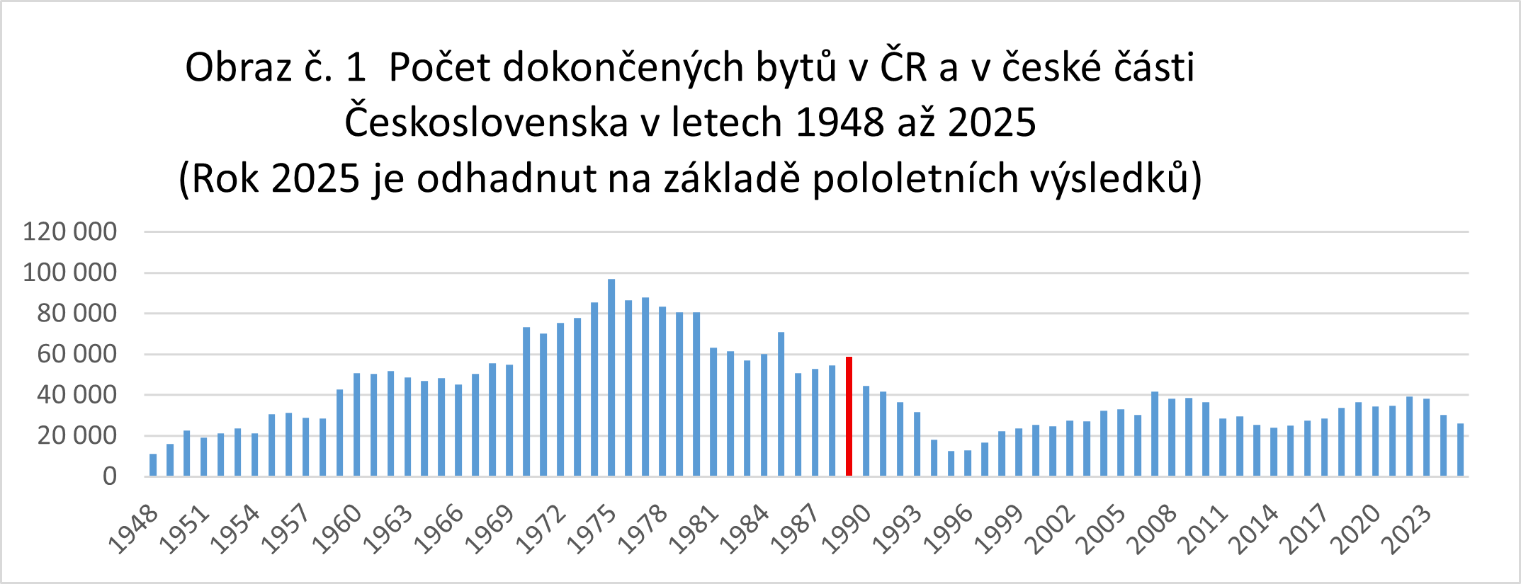 V posledním roce socialismu, v roce 1989, bylo dokončeno 58 583 bytů v bytových a rodinných domech. V celém Československu bylo toho roku odevzdáno 92 482 bytů. Česká republika se na tuto hodnotu už nikdy nedostala, přestože se mladí lidé stále potýkají s nedostatečným uspokojováním potřeby bydlení.