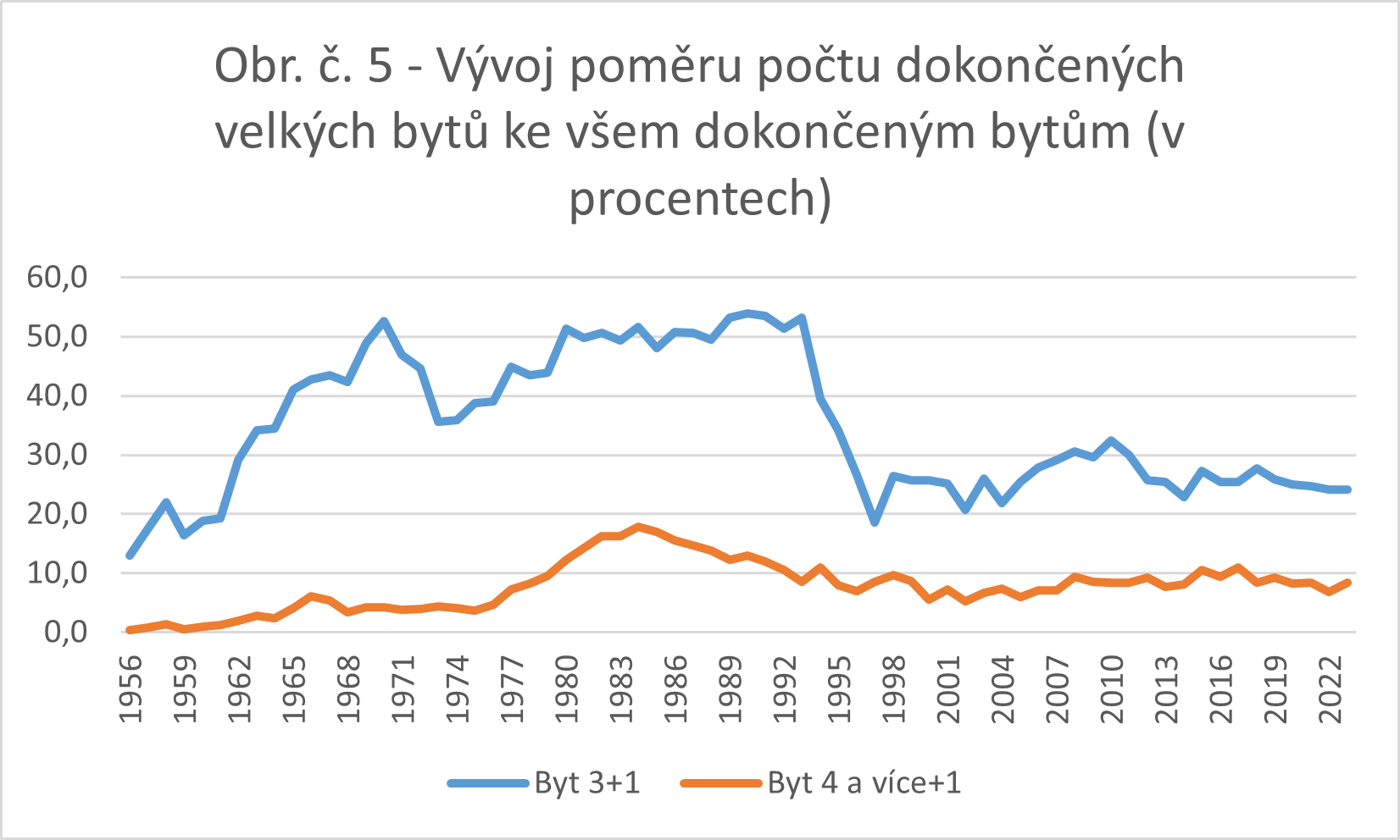 Nízkopříjmové skupiny se spokojily s nájmem, zatímco občané, kteří splnili parametry banky pro poskytnutí hypotečního úvěru, se orientovali na koupi bytu nebo postavení vlastního domu. Vyšší užitná plocha pro bydlení je trvalým zájmem jak nízkopříjmových, tak vysoce příjmových obyvatel České republiky. Velikost plochy bytů se tak přiblížila velikosti bytů stavěných v letech 1948 až 1951. Tyto roky jsou ovlivněny plánovanou setrvačností výstavby bytů z doby před únorem 1948.